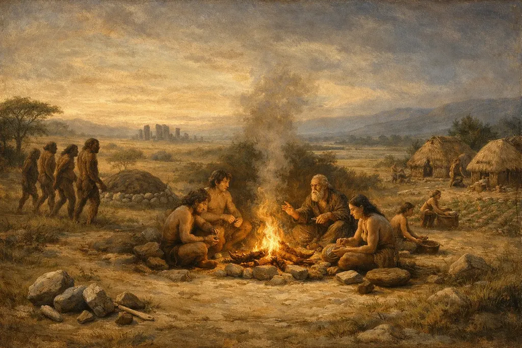 L’humanité devient une espèce capable d’agir sur son environnement et de transmettre ses savoirs.